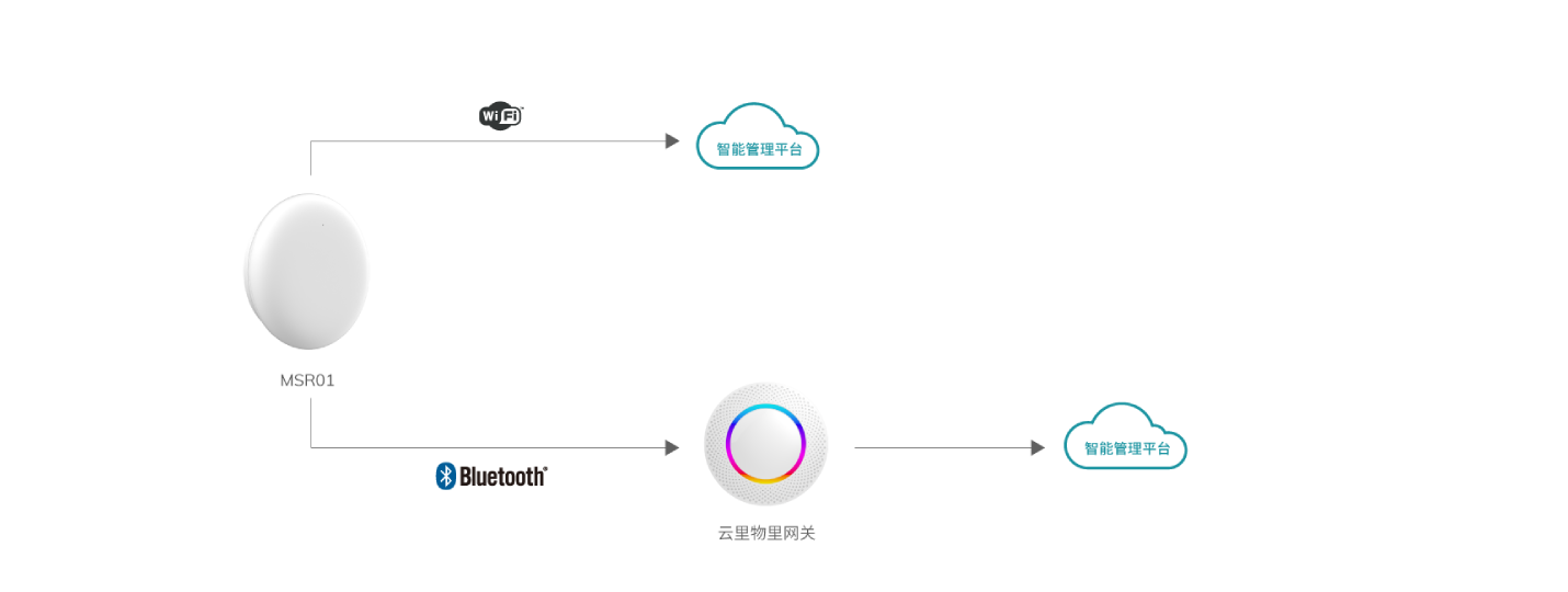 本产品提供Wi-Fi和Bluetooth LE两个版本可选,其中Wi-Fi版支持BLE扫描外部蓝牙传感器数据并上传至服务器或云端。无感探测,无隐私敏感问题,在智慧办公、智慧楼宇、智慧商超、智慧酒店、智能安防、智能家居解决方案中都有着广阔的应用场景。